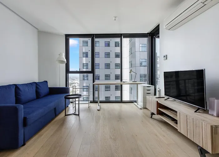 The 1-room Modern Nomads Suites With Amazing View Near Qv Market & is located a 25-minute walk from Melbourne Cricket Ground and offers spa facilities such as an indoor pool. The apartment is 5 minutes' drive from Eureka Skydeck and in the neighbourhood of St Francis Catholic Church.